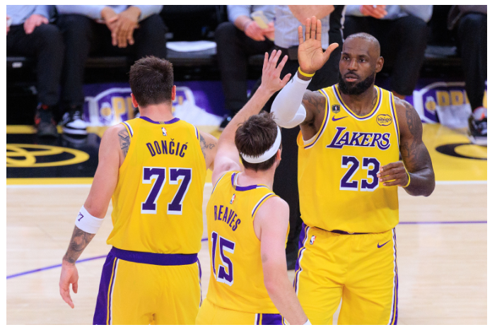 斯台普斯夜灯下的两张脸 与赛前那秒的定格 洛杉矶湖人主场迎战达拉斯独行侠的季前焦点战前,湖人官方推特发布了一组勒布朗·詹姆斯(LeBron James)与卢卡·东契奇(Luka Dončić)在赛前